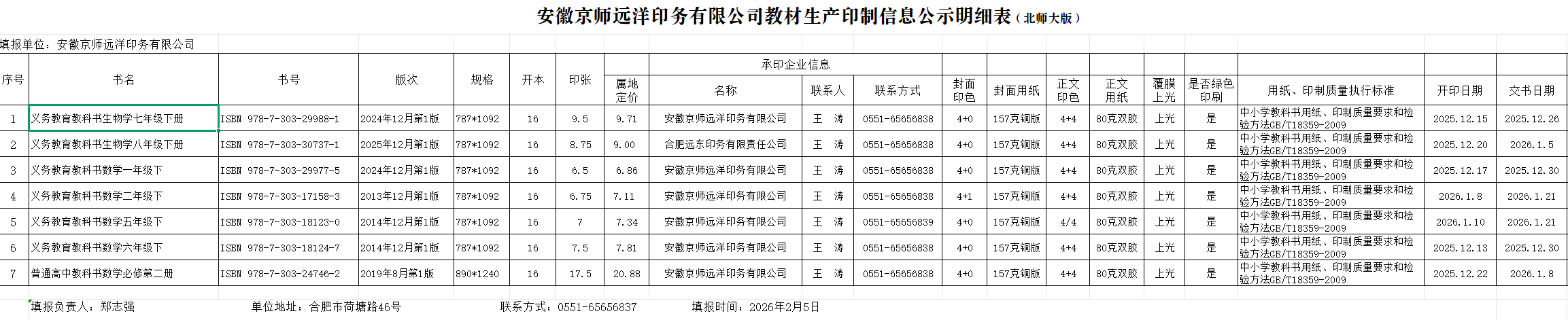 1、2026春_安徽京師遠洋印務(wù)公司印制教材公示(北師大版)